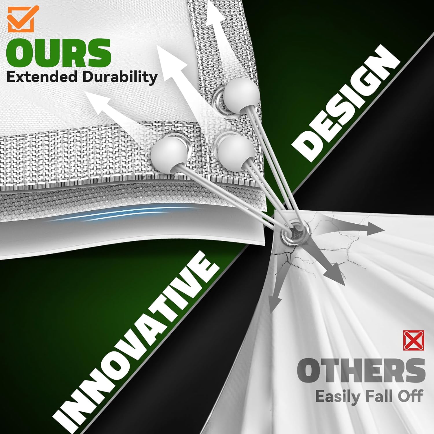 • Upgraded Grommets: Our golf impact screen features stainless steel grommets with a three-hole design. The perimeter includes 32-48 grommet holes, ensuring durability. Additionally, our reinforced Touch fastener border meets diverse installation needs, enhancing longevity and convenience.