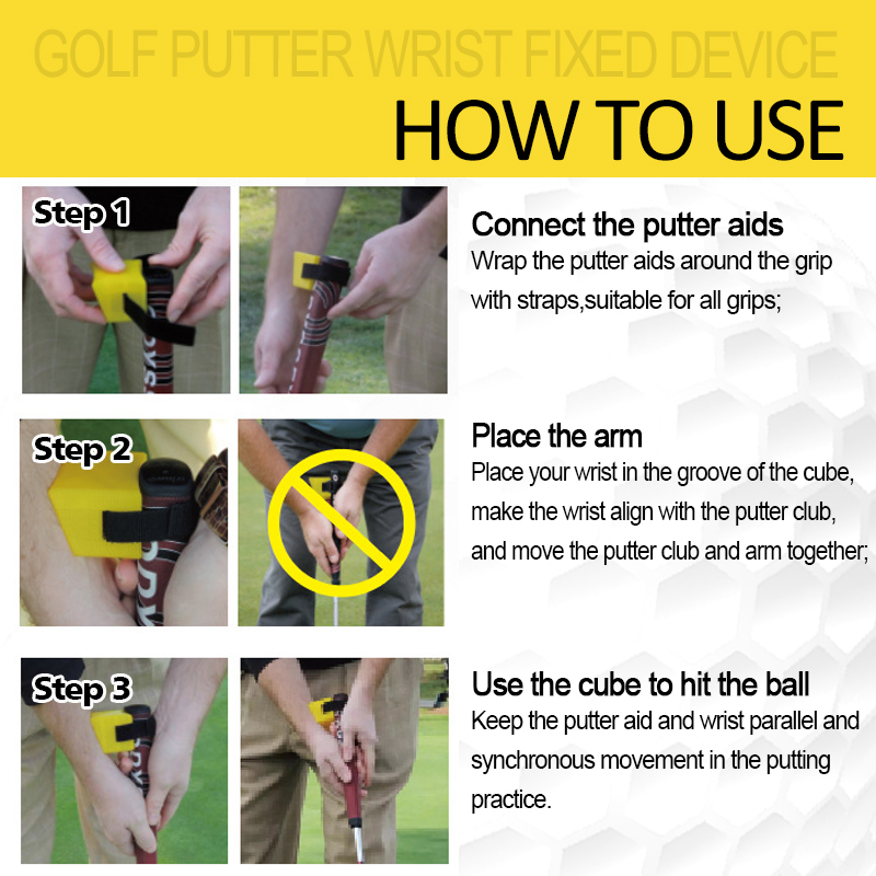 🏌【EASY TO USE】- You just need to place the golf training wrist aid in the right place on the golf club, adjust the hook and loop to keep the golf putting wrist training aid in place, and place your wrist according to the curvature of the golf training cube to start your practicing time.