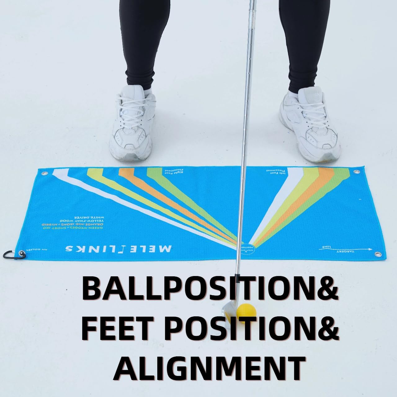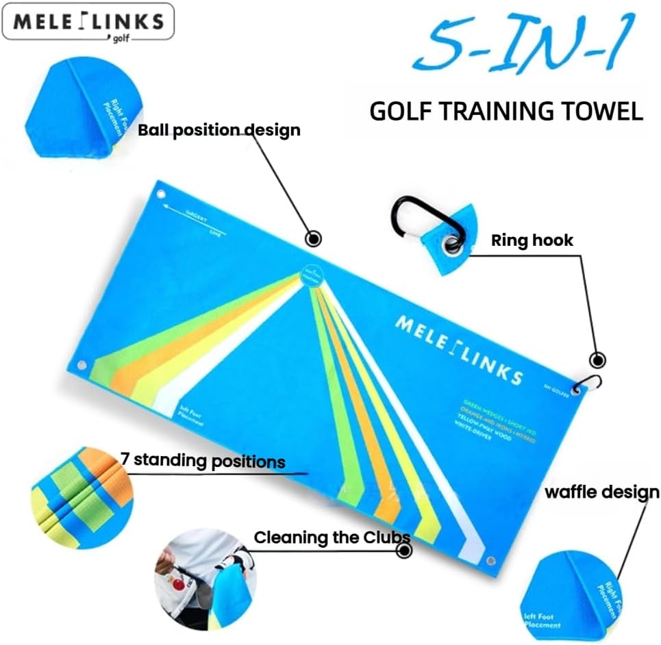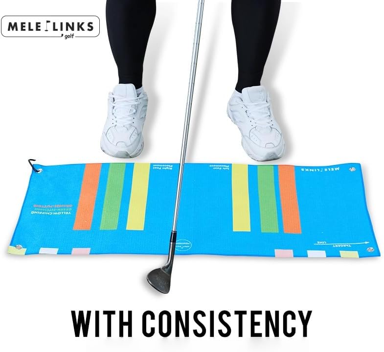 • šŸ‘‰ć€Alignment Tool怑The Orange Zone on the Melelinks Stance Towel is calibrated specifically for mid-iron shots, typically your 7 to 5 irons. This zone helps position your feet and the ball in the optimal setup for clean, crisp contact.