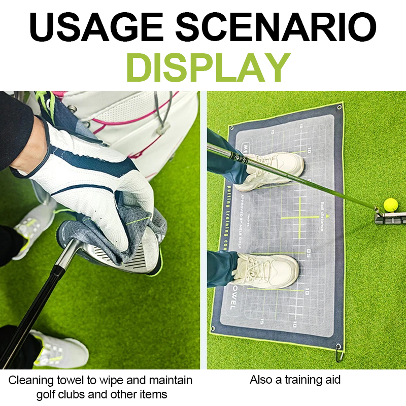 🏌【Used as Posture Training Mat】 Each MELELINKS waffle pattern microfiber golf towel is sized at 32inch x 20inch, The integral markings and lines on the mat guide golfers in adjusting foot placement for different clubs and swing actions in golf stance training.