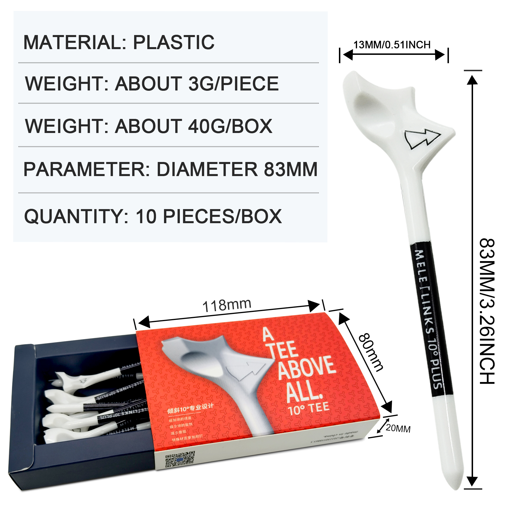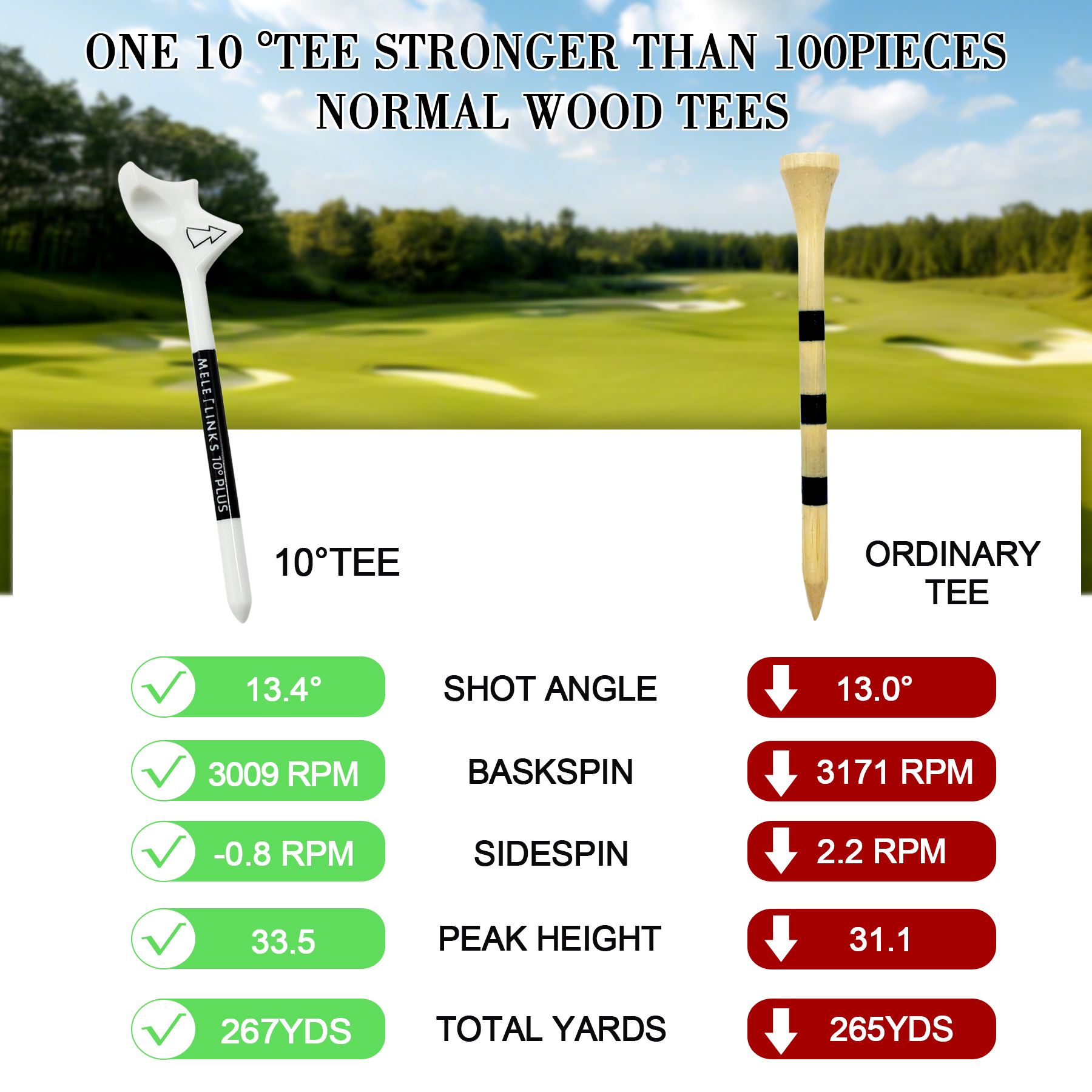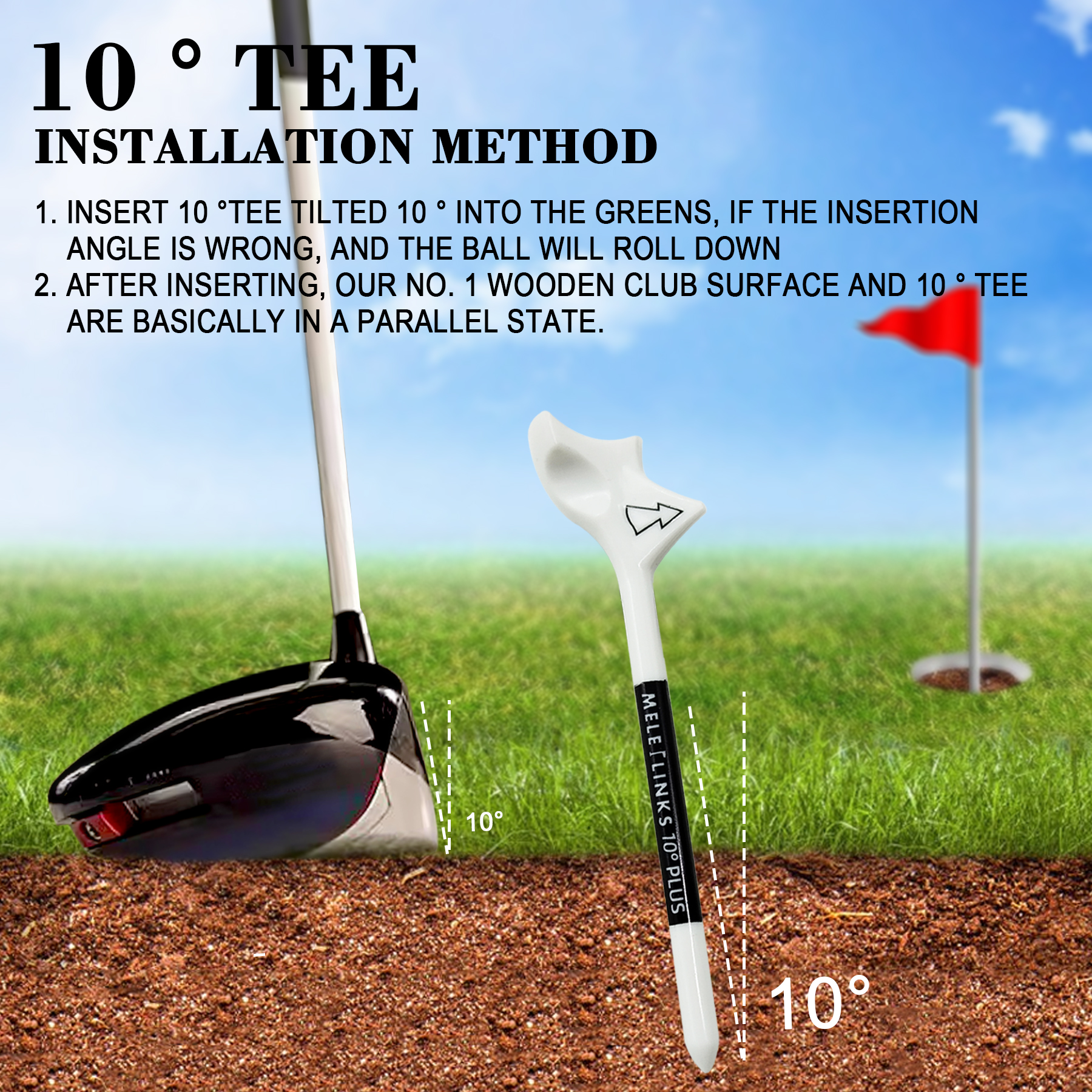 MELELINKS 10 Degree Golf Tees, Durable Plastic Golf Tees Designed to Enhancing Golf Shot Distance& Precision Compact Golf Equipment for Women and Men(Pack of 10)
